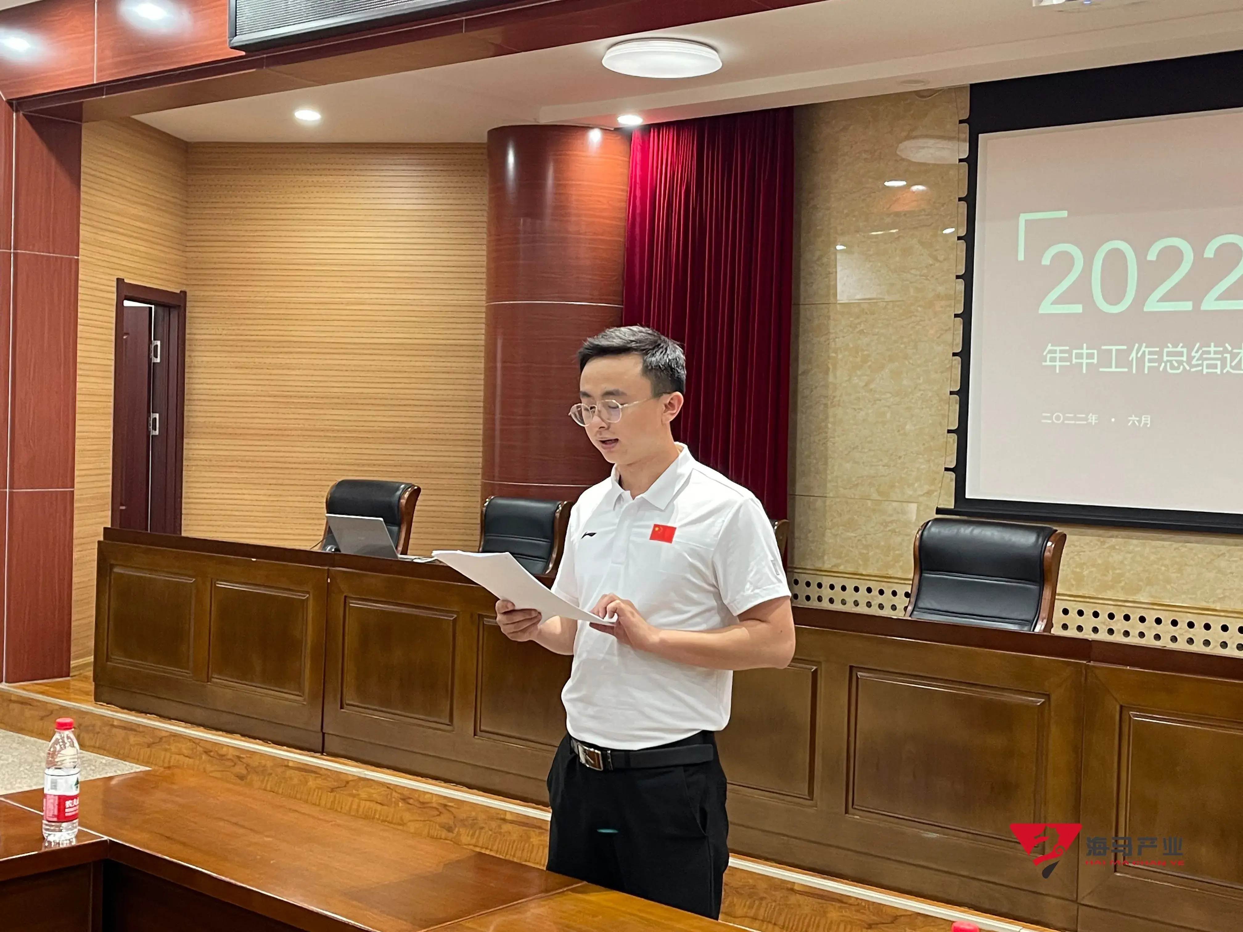2022年6月29日下午,新宝GG文化产业集团在山东省体育中心二楼会议室召开年中工作总结述职会议,会议对上半年工作成果进行了总结汇报,并就下半年重点工作进行部署。总经理王海民出席了本次会议。会议由综合管理部负责人王永健主持。